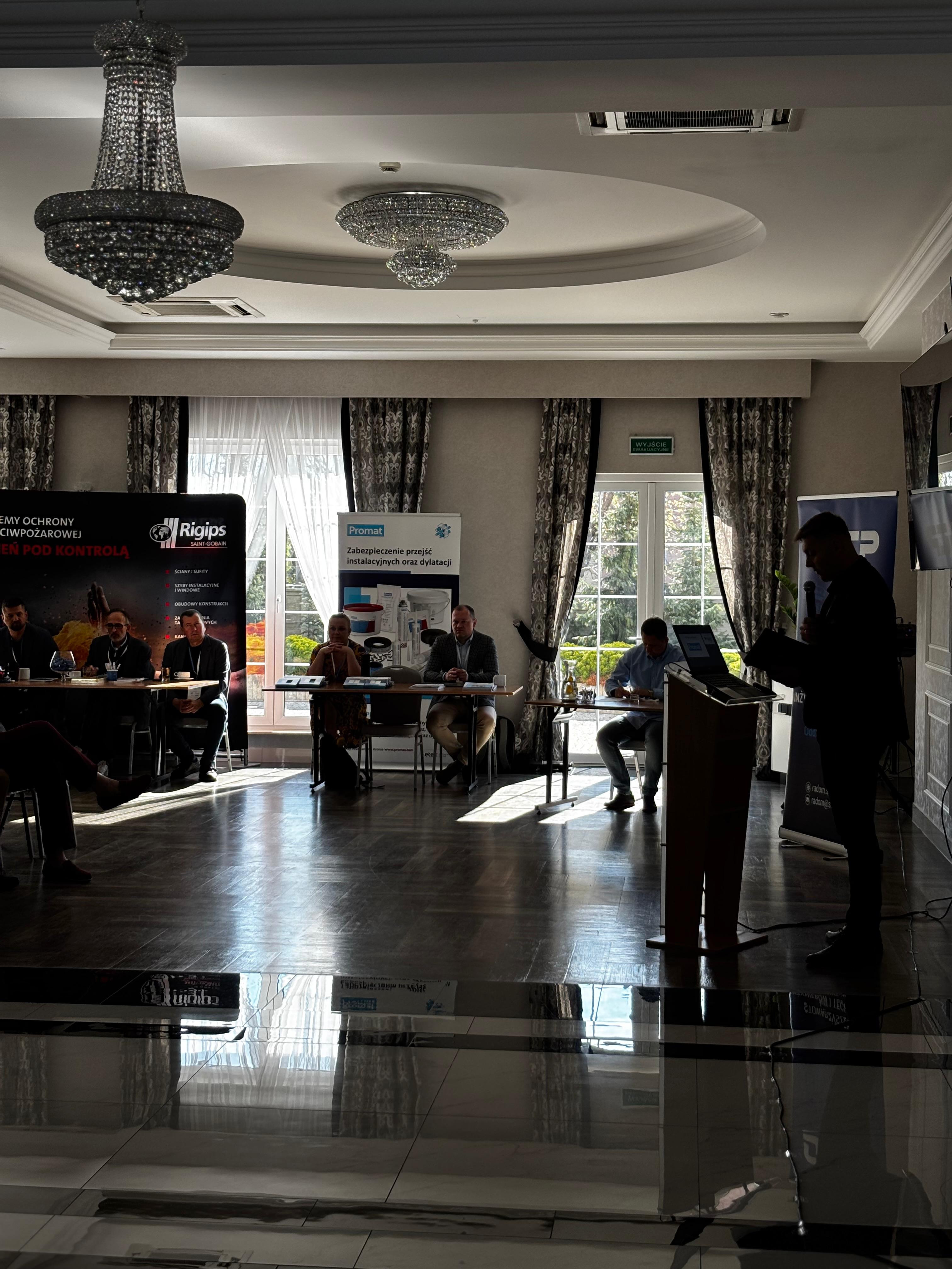 Istotnym elementem programu były również prezentacje firm, w tym wystąpienie dotyczące odbiorów przepustów ogniochronnych oraz najczęstszych błędów wykonawczych. W dalszej części dnia uczestnicy wysłuchali prelekcji dotyczących klas odporności pożarowej, wentylacji pożarowej oraz rozwiązań zamiennych w zakresie klasy odporności ogniowej elementów budynku. Całość pierwszego dnia zwieńczyła uroczysta kolacja, sprzyjająca integracji środowiska i kontynuacji merytorycznych rozmów.