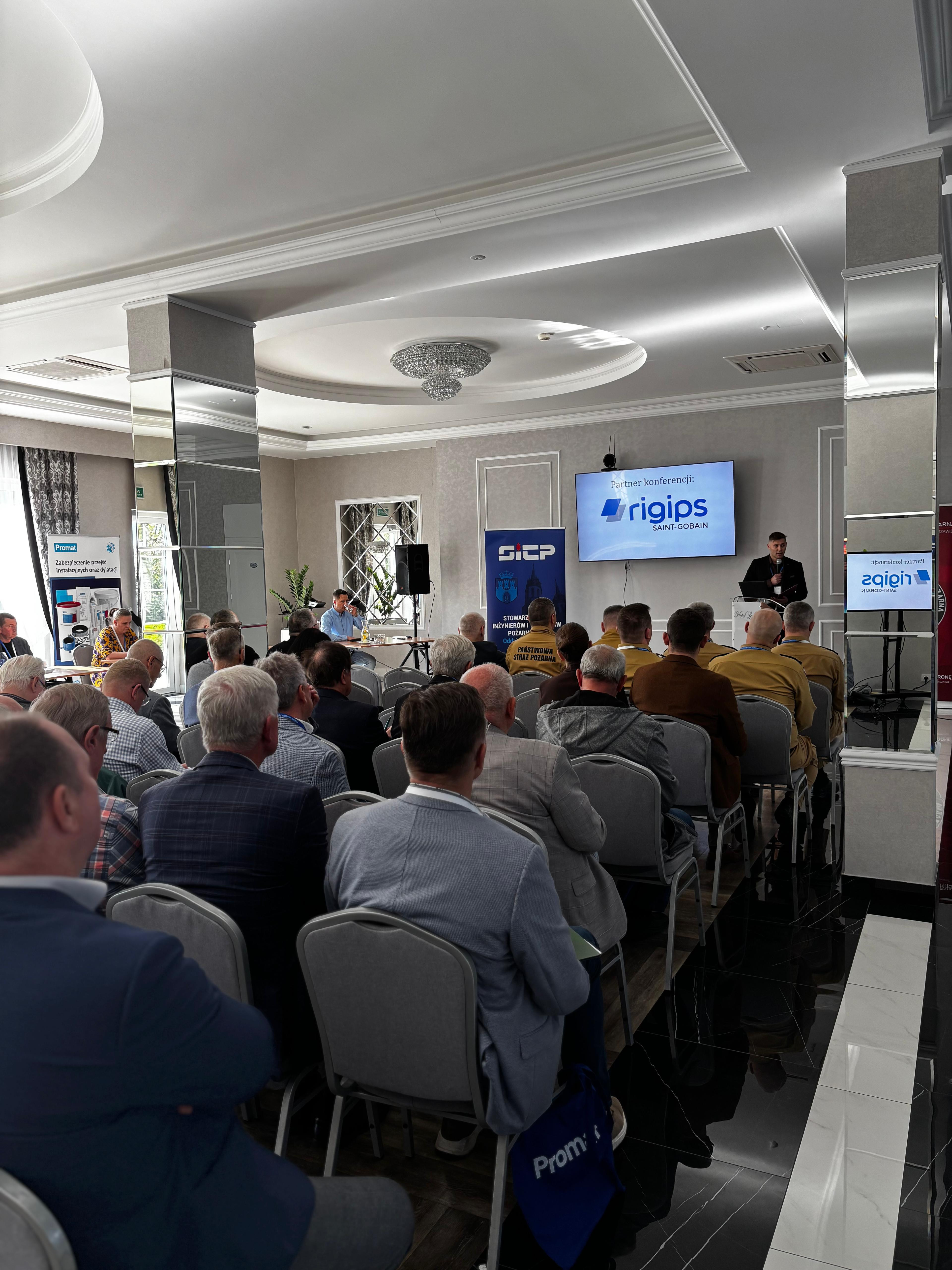 Dziękujemy również przedstawicielom firm partnerskich, w szczególności Firmie PROMAT oraz Firmie Rigips, za merytoryczne prezentacje i podzielenie się praktycznym doświadczeniem związanym z rozwiązaniami stosowanymi w ochronie przeciwpożarowej.